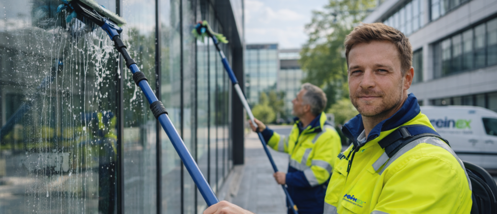 Die Glas- und Fassadenreinigung von reinEX sorgt für saubere Fenster, klare Sicht und ein dauerhaft gepflegtes Erscheinungsbild Ihrer Immobilie. Zuverlässig, materialschonend und effizient.