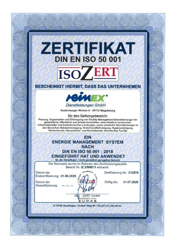 Zertifikat: DIN EN ISO 50 001 : 2018